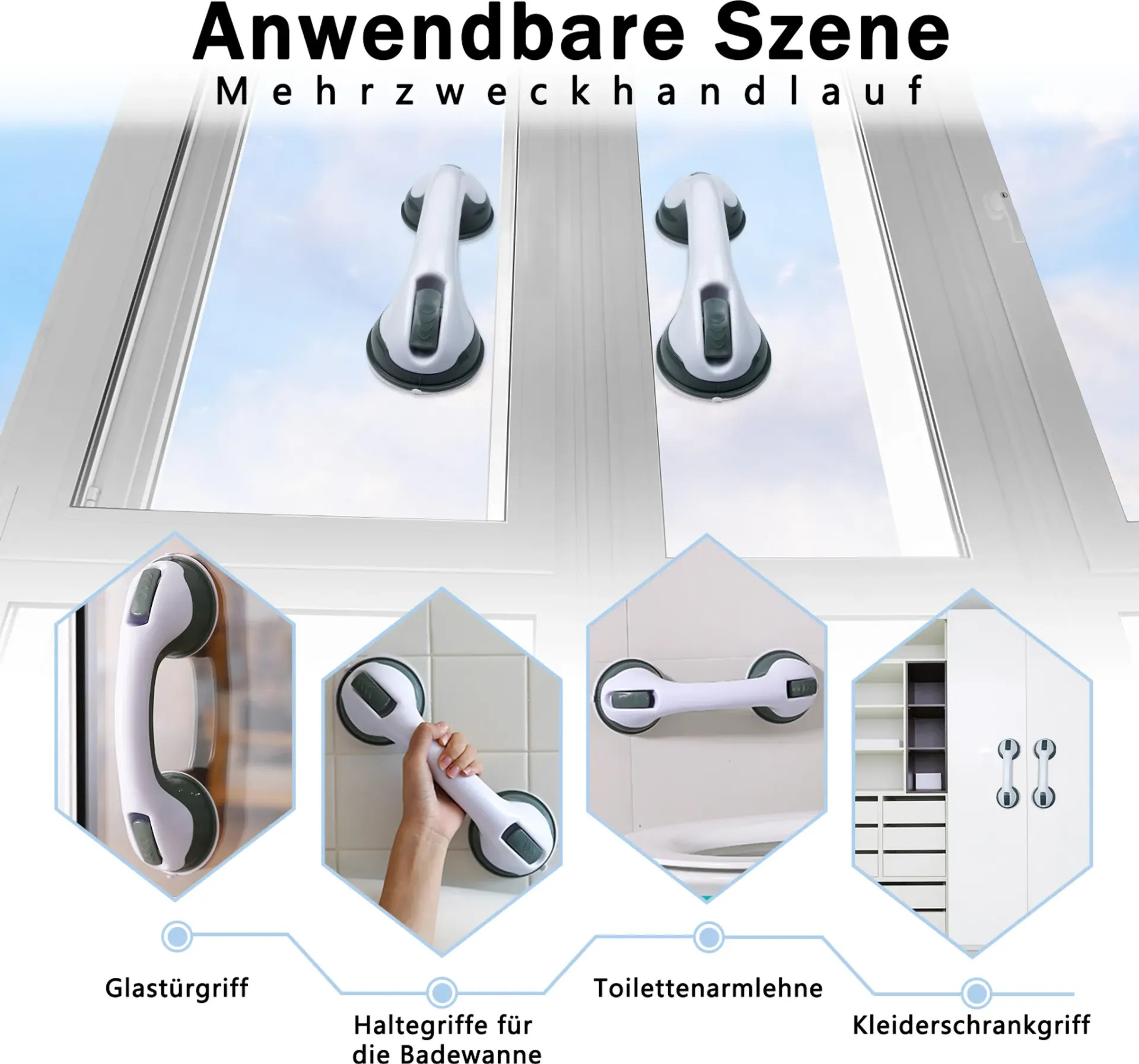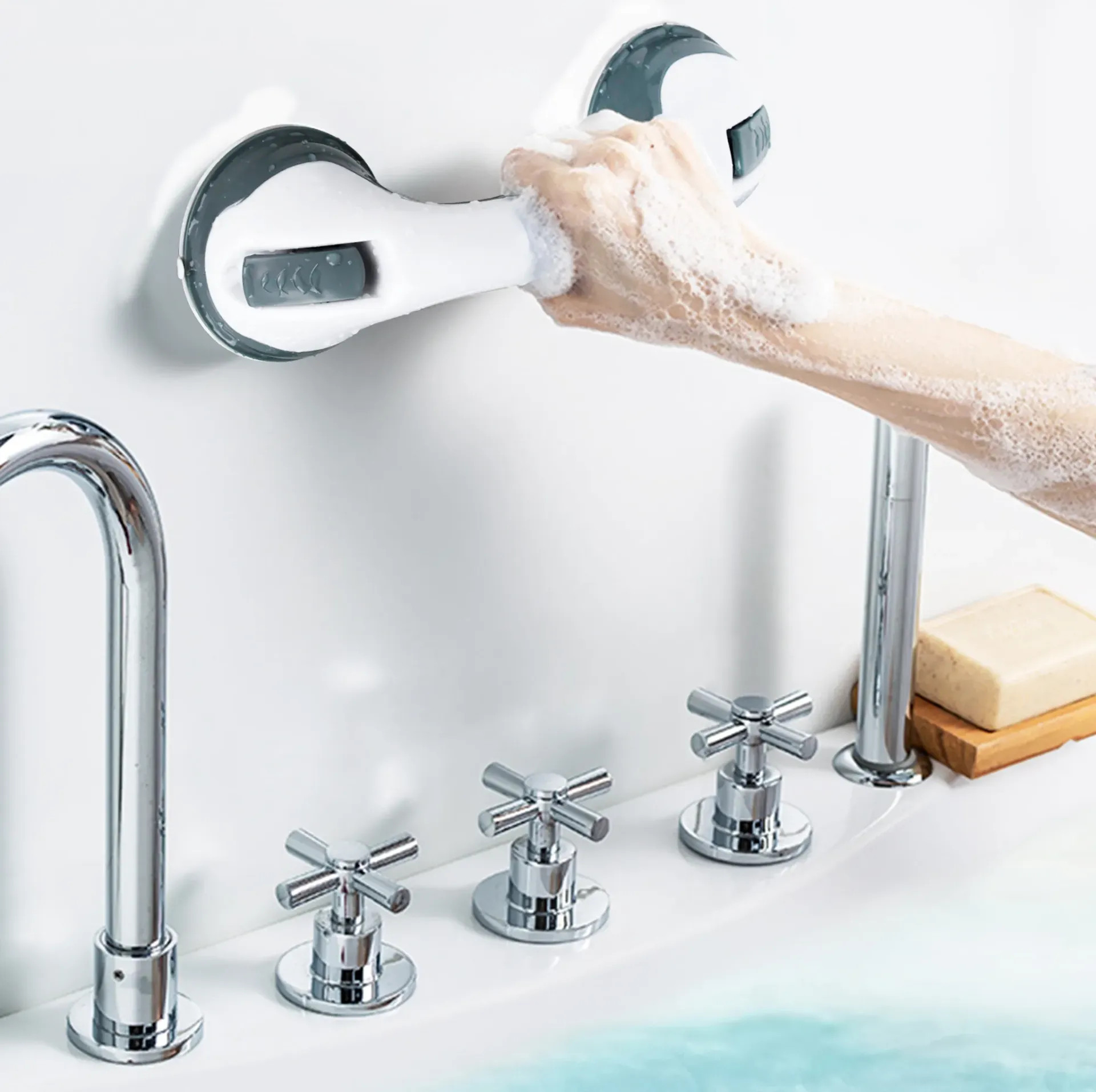 Toto přenosné koupelnové madlo poskytuje oporu při vstupu do vany, sprchy nebo při pohybu v koupelně. Díky silným přísavkám drží pevně bez nutnosti vrtání.Je ideálním řešením pro seniory, vozíčkáře i pečovatele. Lze snadno přemístit nebo odmontovat.