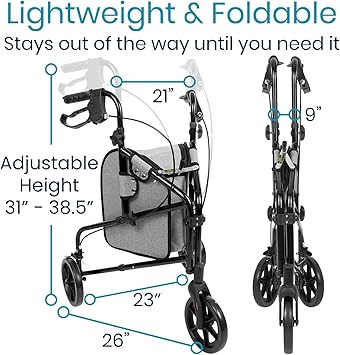 Hledáte chodítko, které je lehké, stabilní a zároveň skladné? Vive Mobility tříkolové chodítko je navrženo pro seniory a osoby s omezenou pohyblivostí, kteří ocení jeho jednoduché ovládání v malých prostorách, lehkou konstrukci z hliníku a pohodlné skládání. Chodítko se vejde i do menšího kufru auta a lze jej snadno přenášet. Je vhodné pro vnitřní i venkovní použití – skvělé pro běžné pochůzky, rehabilitaci i delší procházky.